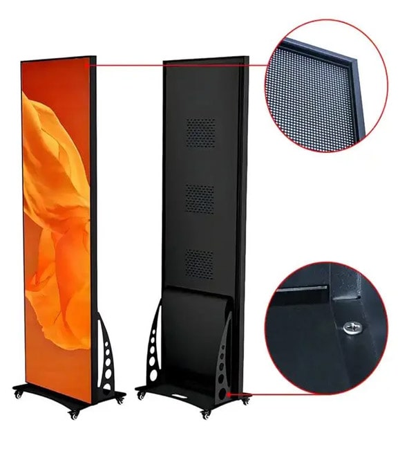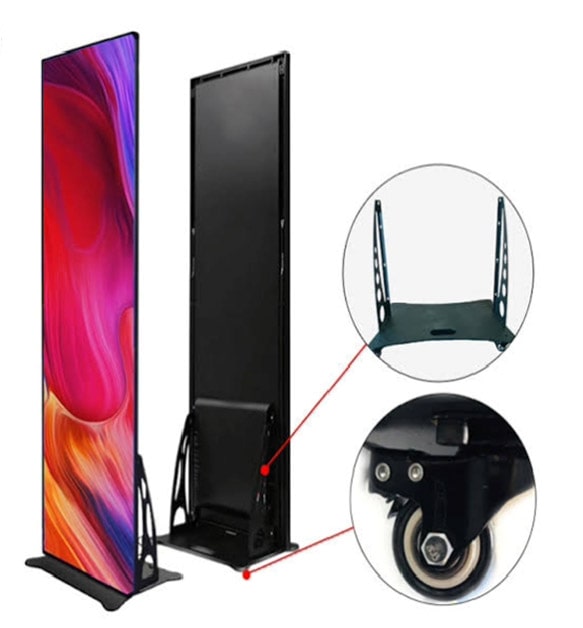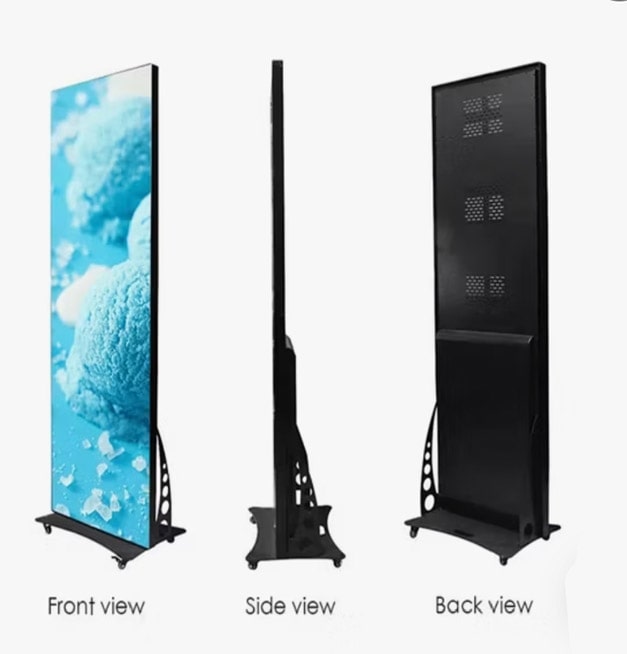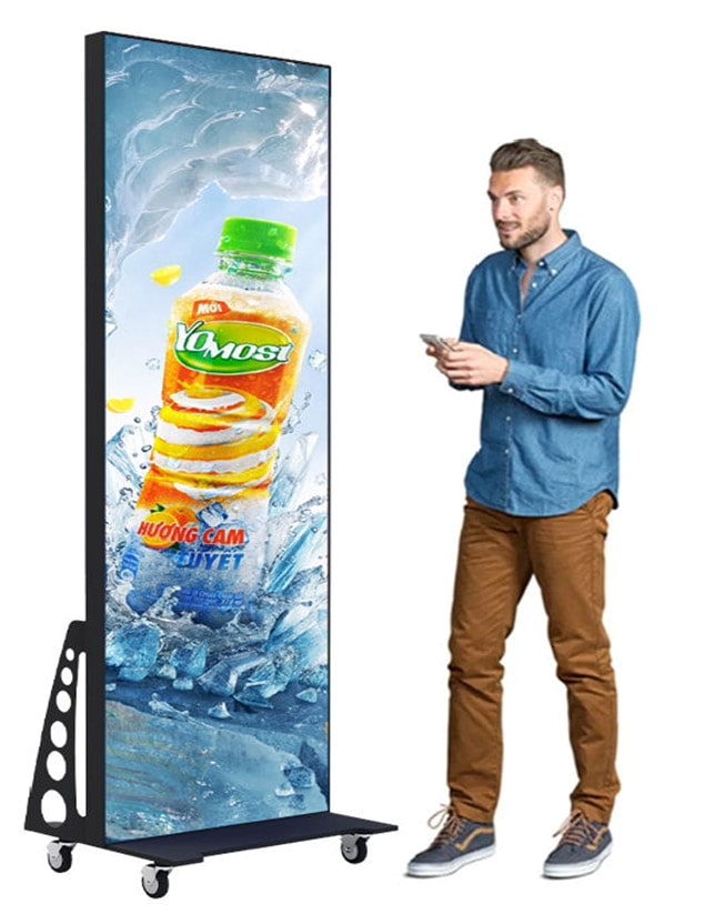 This Digital Poster LED Standee feature high-definition LED panels, multi-screen playback capabilities, and remote content management systems thru USB, WiFi, or Airdrop.
